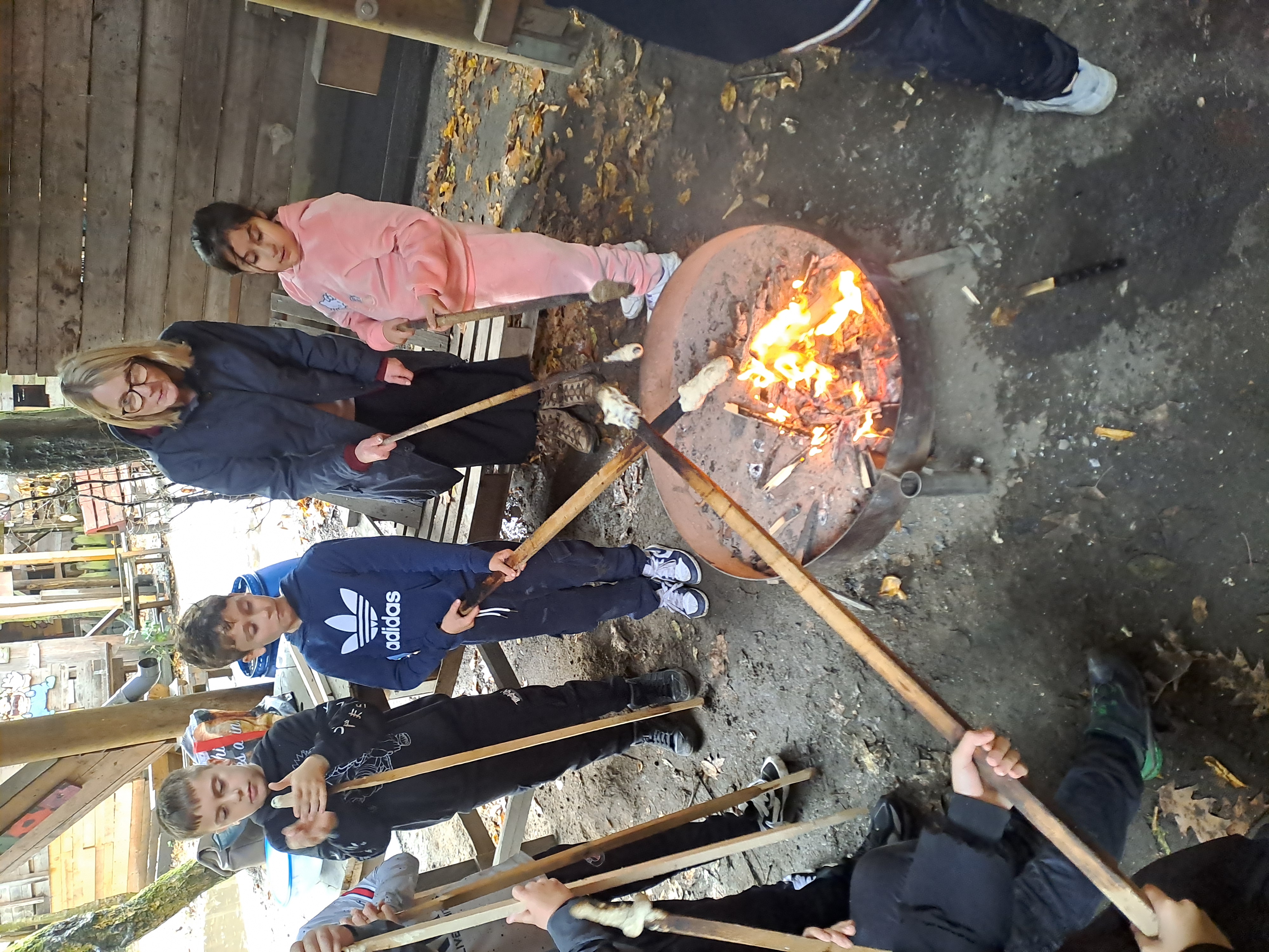 Obwohl das Wetter erst schlecht aussah hatten wir eine tolle Zeit. Wir haben Stockbrot gebacken, geklettert, gesägt und gehämmert und einfach eine Menge Spaß gehabt.