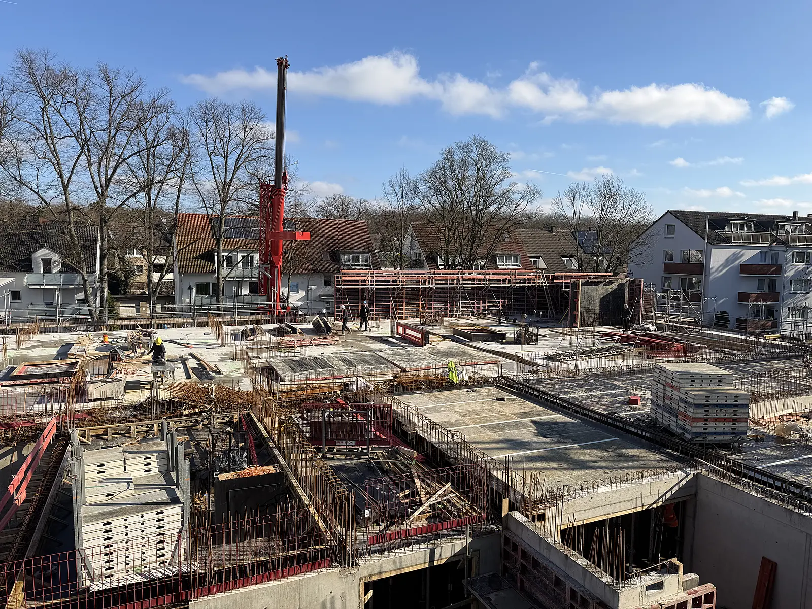 Zur Zeit wird der erste Schulgebäudeteil errichtet, in dem übergangsweise 4 unserer Klassen ab dem Frühjahr 2027 untergebracht sind.